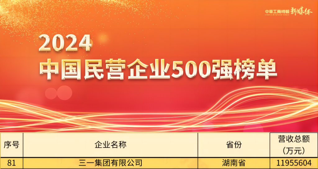 榜单显示,三一集团位列“2024中国民营企业500强”第81位,同时荣膺“2024中国制造业民营企业500强”第54位。 在中国民营企业500强的湖南企业中,三一集团同样排名首位。 今年全国工商联组织开展第26次上规模民营企业调研,共有9642家2023年营业收入5亿元以上的企业参加,其中营业收入前500位的企业为2024中国民营企业500强。 结果显示,面对复杂严峻的国际环境和艰巨繁重的国内改革发展稳定任务,在以习近平同志为核心的党中央坚强领导下,民营企业500强坚定信心、应对挑战,认真践行新发展理念,聚焦主业、做精实业,加强自主创新,走高质量发展道路,整体上呈现稳中有进、质效同升的良好发展态势。 过去一年,围绕全球化、数智化、低碳化战略,三一集团再创历史最佳海外经营业绩、全球化制造布局加速、数智化走深走实、电动化产品市占率遥遥领先、新能源产业业务屡屡突破...... 当前,三一集团坚持高质量发展经营原则,大力推动新质生产力建设,坚定不移地落实“三化”战略,努力建设世界一流企业,为推进中国式现代化作出更大贡献。