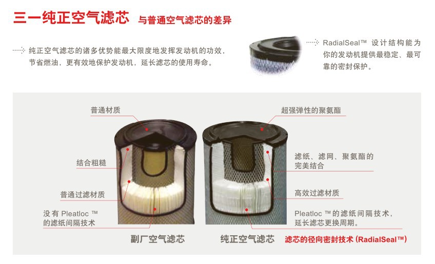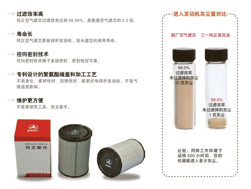 纯正配件以优异的过滤性能,能有效的保护你的机器,降低故障频率,延长机器的使用寿命!